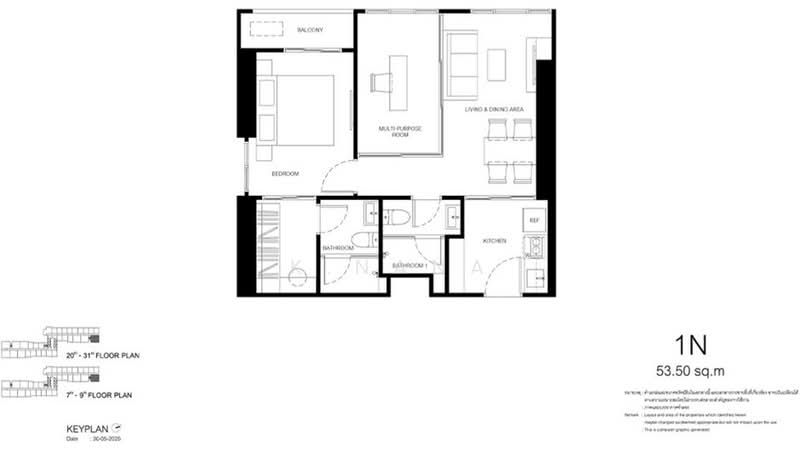 Floor size of this unit at XELF by Sansiri is 54 sqm.