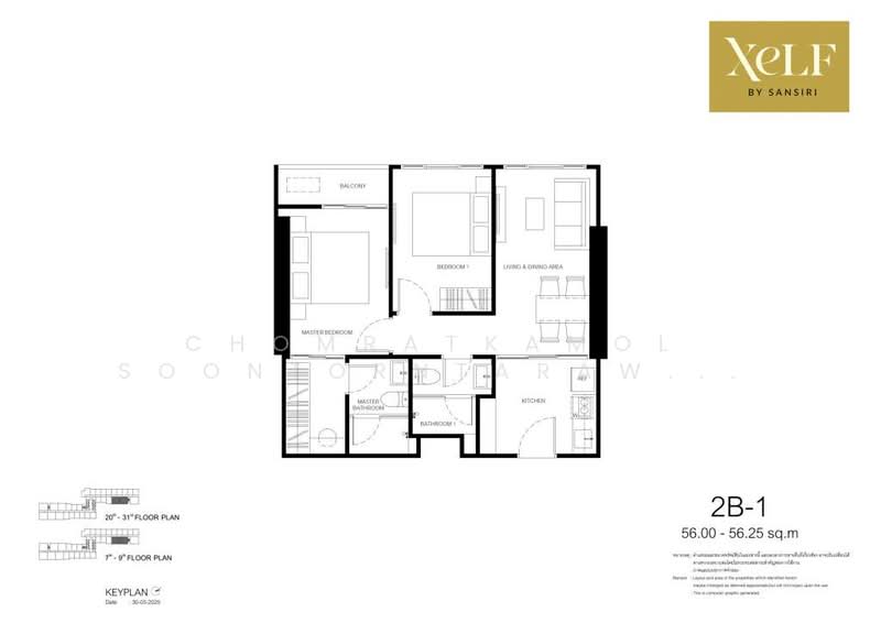 Floor size of this unit at XELF by Sansiri is 56 sqm.