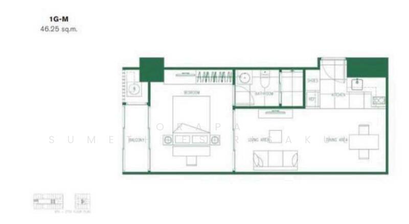 Fully furnished 1 bedroom, 1 bathroom condo for sale with a floorsize of 46.61 squaremeters, located on the 16th floor, at XT