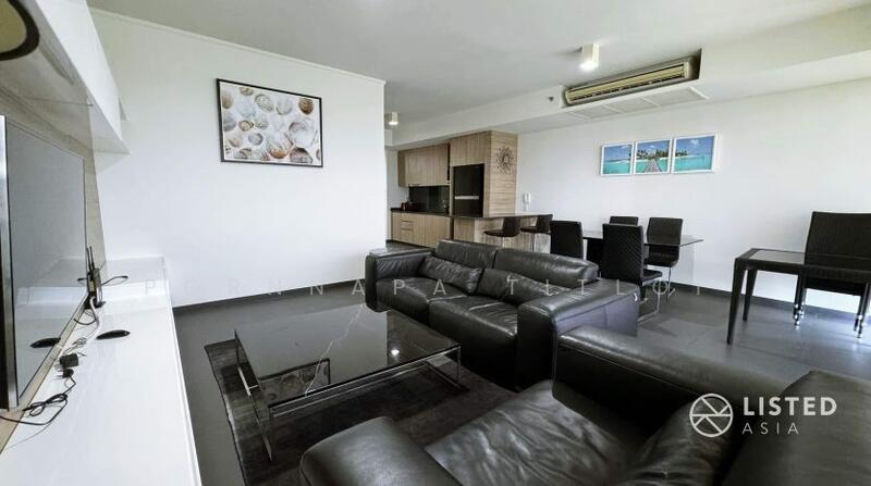 2 bedroom 2 bathroom condo for Sale at Zire Wongamat. Available in Foreign Name Ownership. Offering 100.3 Sqm of living area and located on the 26th floor. It comes fully furnished with European style kitchen, living room with sofa, TV, dining table, built-in wardrobes, en-suite bathroom and balcony with sea view.