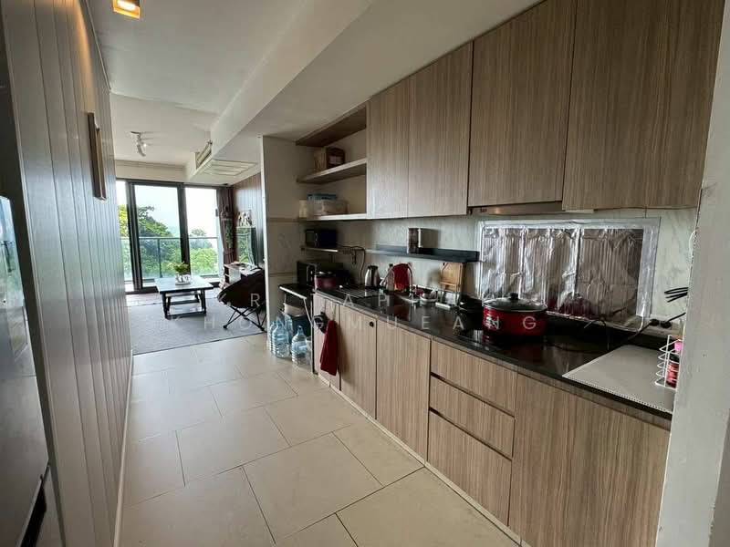 This fully furnished condo at Zire Wongamat is available for sale at ฿14,500,000 with 2 bedrooms, 2 bathrooms, balcony, gym, oven,