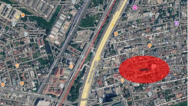 ที่ดินตั้งอยู่บนแนวถนนวิภาวดีรังสิต ซึ่งเป็นหนึ่งในเส้นทางหลักของกรุงเทพฯ เชื่อมต่อพื้นที่สำคัญหลายโซน รายล้อมด้วยแหล่งที่อยู่อาศัย อาคารสำนักงาน และโครงการพัฒนา เหมาะสำหรับพัฒนาโครงการที่อยู่อาศัยหรือเชิงพาณิชย์ในระยะยาว