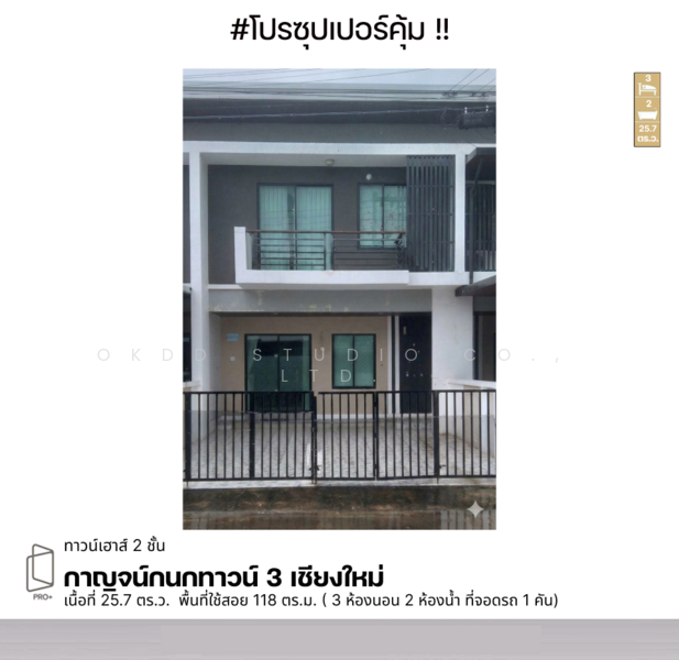 เนื้อที่ 25.7 ตร.ว. พื้นที่ใช้สอย 118 ตร.ม.