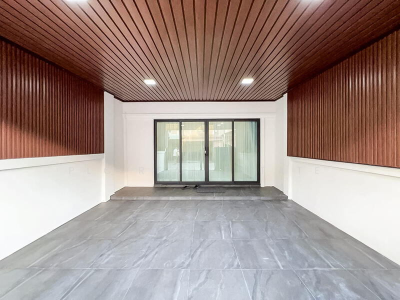 ชั้นล่างประกอบด้วยพื้นที่นั่งเล่นกว้างขวาง ห้องครัวสไตล์ยุโรปขนาดใหญ่พร้อมเครื่องใช้ไฟฟ้าครบครัน และห้องน้ำพร้อมฝักบัวอาบน้ำ ชั้นวางทีวีแบบบิวท์อิน เคาน์เตอร์บาร์อเนกประสงค์ และพื้นที่เก็บของแบบบิวท์อินเพิ่มเติม ช่วยเพิ่มความสะดวกสบายและความสวยงาม พื้นที่จอดรถปูด้วยกระเบื้องและมีหลังคาและรั้วกั้นเพื่อความเป็นส่วนตัวและความสะดวกสบายยิ่งขึ้น