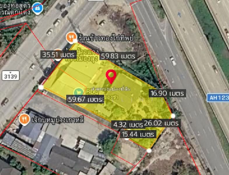 หน้ากว้างติดถนนเส้น3139 35 เมตร X ยาว 59 เมตร