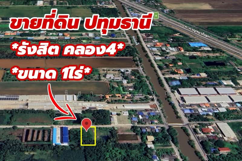ขายที่ดินทำเลทอง 1 ไร่ ติด สุธิญดา อพาร์ทเม้นท์ รังสิต คลอง 4