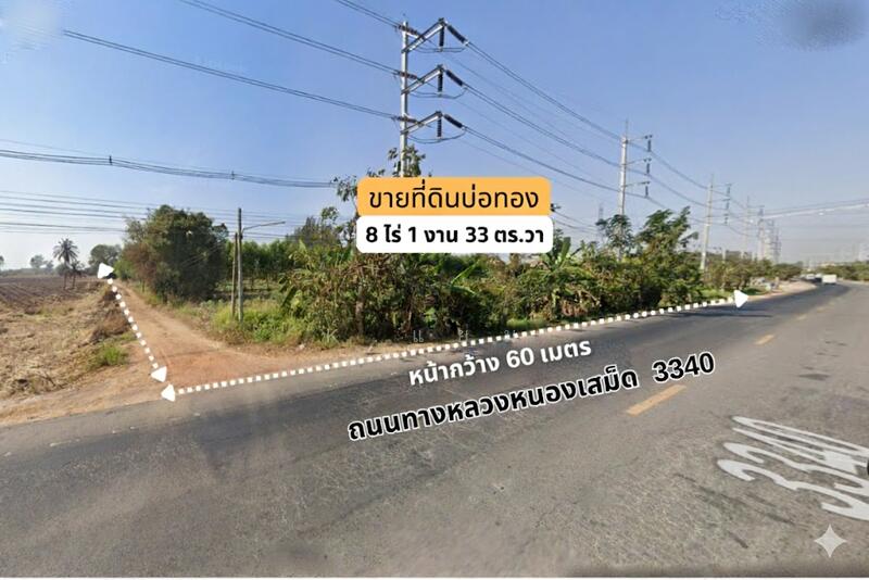 ขายที่ดินบ่อทอง 8 ไร่ ติดถนนทางหลวง ใกล้สี่แยกหนองเสม็ดชลบุรี