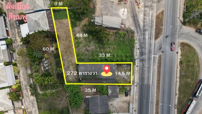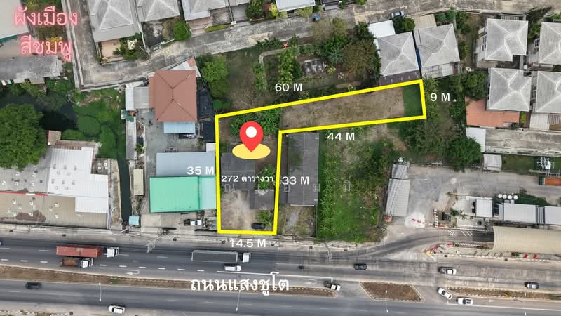 ราคาซื้อต่อ ตร.ม. ของ ขายที่ดินบ้านโป่ง ราชบุรี ติดถนนแสงชูโต ใกล้ Big C – Lotus’s บ้านโป่ง ประมาณ 800 ม. อยู่ที่ ฿5,873 / ตารางเมตร.