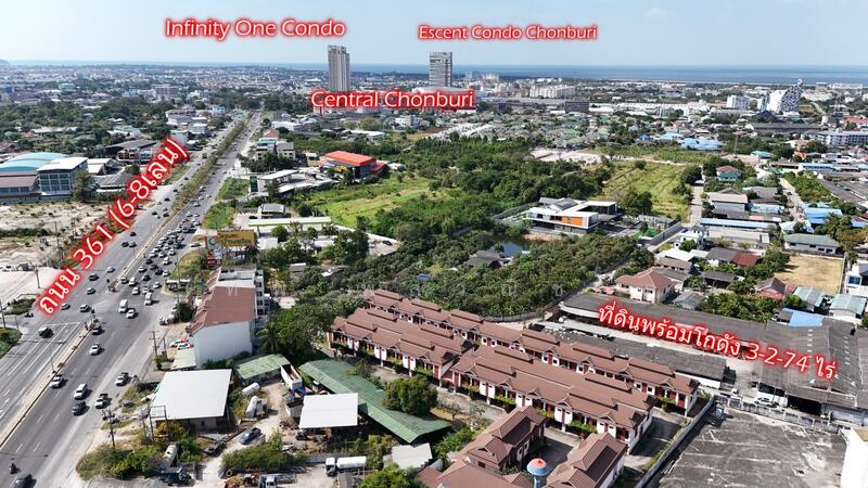 ขายที่ดินผังแดงพร้อมโกดัง ชลบุรี 3 ไร่ 2 งาน 74 ตร.ว. ติดโกลบอลเฮ้าส์