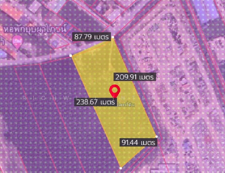 หน้ากว้างติดถนนคอนกรีต 87 เมตร X ยาว 238 เมตร