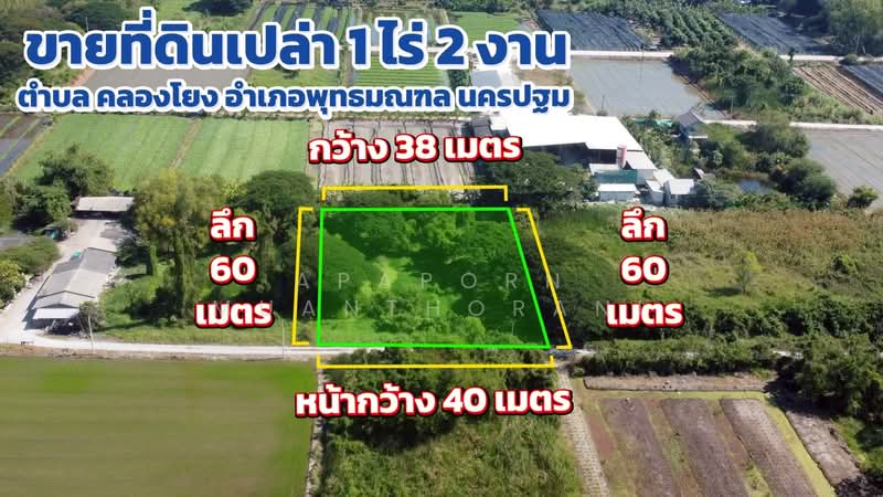 ขายที่ดินเปล่า 1 ไร่ 2 งาน คลองโยง นครปฐม ที่ดินสี่เหลี่ยม เหมาะสำหรับสร้างโรงงาน บ้านจัดสรร เกษตร ตั้งอยู่ที่ คลองโยง, พุทธมณฑล, นครปฐม คลองโยง พุทธมณฑล นครปฐม.