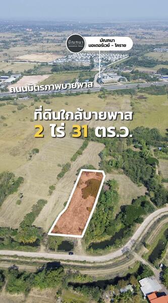 ขายที่ดิน ทำเลดี ใกล้ถนนบายพาสโคราช ใกล้ m6 พัฒนาแล้ว ติดคลองส่งน้ำและลำเหมือง ใกล้วัดหมื่นไวย โคราช ราคาดี อยู่ฝั่งขาเข้าเมือง เนื้อที่ 2 ไร่ 31 ตรว. เพียง 6,500/ตรว. ราคารวม 5.4 ล้านบาท เท่านั้น