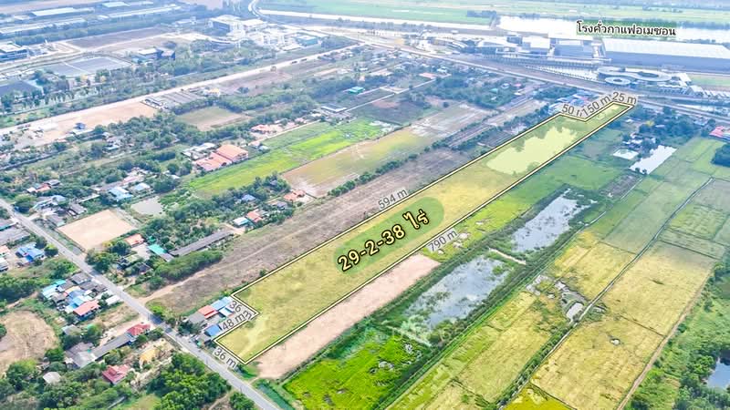 ที่ดิน 29-2-38 ไร่ ถมแล้ว ติดถนน 2 ด้าน