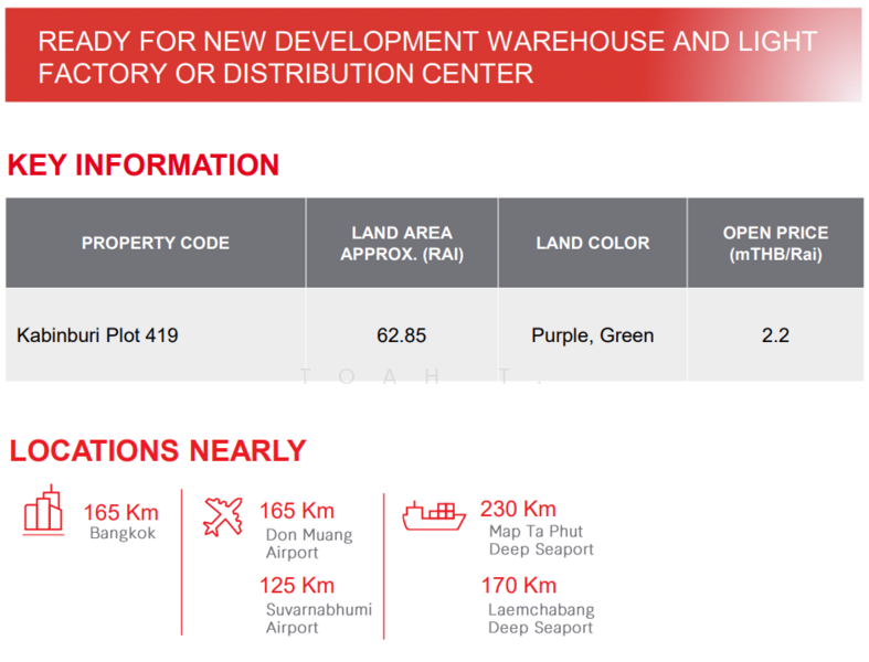 ราคาขายของยูนิต ขายที่ดิน นิคมกบินทร์บุรี ปราจีนบุรี 304 : land for sell Kabinburi Industrial Prachinburi 304 road อยู่ที่ ฿139,000,000.