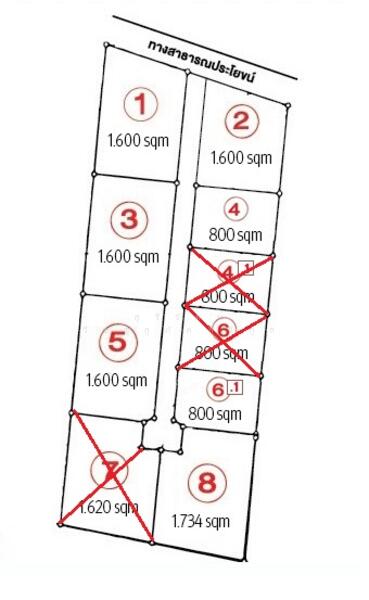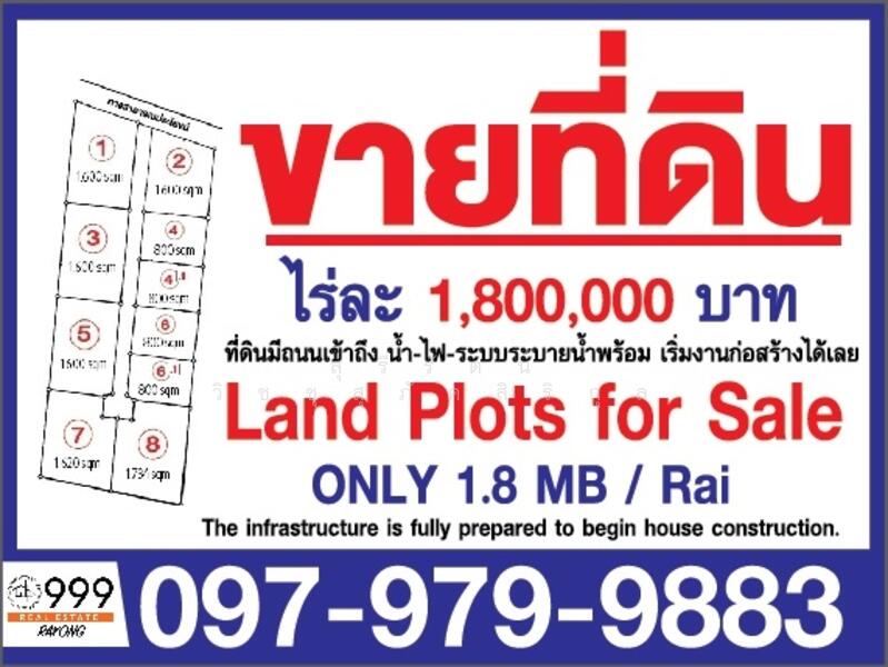 ที่ดินแบ่งเป็นแปลงขนาด 800 หรือ 1,600 ตารางเมตร 800 ตารางเมตร ราคาแปลงละ 900,000 บาท และขนาด 1,600 ตารางเมตร ราคาแปลงละ 1,800,000 บาท