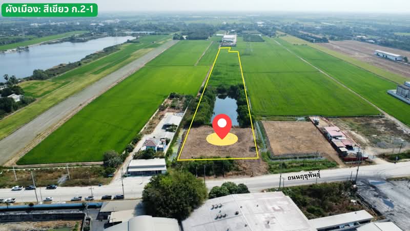 ขายที่ดิน 18 ไร่ ไทรน้อย นนทบุรี | ติดถนนฤชุพันธุ์ (3003) ใกล้ถนน 340 เพียง 200 ม. | เหมาะทำโกดัง–โลจิสติกส์ | 2.4 ลบ./ไร่