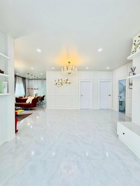 ภายในบ้านตกแต่งด้วยเฟอร์นิเจอร์บิวท์อินครบครัน พร้อมเข้าอยู่ได้ทันที ครัวบิวท์อินพร้อมเครื่องใช้ไฟฟ้าครบครัน ติดตั้งผ้าม่านคุณภาพดีทั่วทั้งบ้าน เพิ่มความสะดวกสบายและความเป็นส่วนตัว
