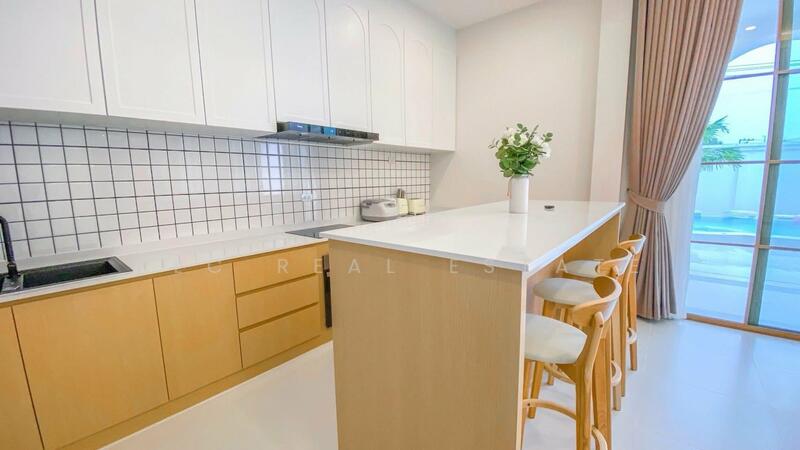สระว่ายน้ำส่วนตัวช่วยเพิ่มความสะดวกสบายและความสุขในการใช้ชีวิตประจำวัน นอกจากนี้ การออกแบบสไตล์เมดิเตอร์เรเนียนยังทำให้วิลล่าแห่งนี้โดดเด่นและเป็นตัวเลือกที่หาได้ยากในพัทยาตะวันออก