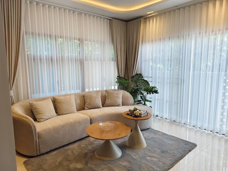 ภายในบ้านติดตั้ง แอร์ฝังฝ้า 4 ทิศทาง และ Samsung WindFree ทุกห้องนอน พร้อมเฟอร์นิเจอร์บิลท์อินครบชุด มีอ่างอาบน้ำ อ่างล้างหน้า His & Her เตาไฟฟ้า เตาอบ เครื่องซักผ้า เครื่องทำน้ำอุ่น ระบบ Digital Door Lock และประตูไม้สักแท้ด้านหน้า–หลัง เสริมความปลอดภัยด้วย ประตูรั้วอัตโนมัติจากอิตาลี