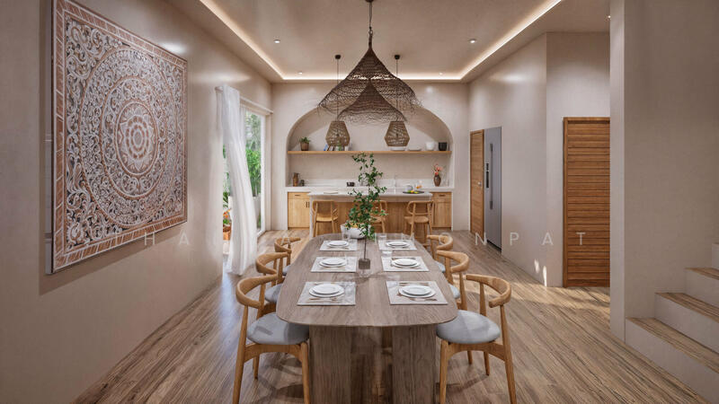 พื้นที่ภายนอกโดดเด่นด้วยสระว่ายน้ำส่วนตัว ศาลาและระเบียงขนาดใหญ่ ล้อมรอบด้วยสวนและต้นไม้เขตร้อน เหมาะสำหรับการพักผ่อนกลางแจ้งหรือใช้เวลาร่วมกับครอบครัว ตัววิลล่าขายแบบ Off-plan เปิดโอกาสให้ผู้ซื้อเลือกปรับรายละเอียดบางส่วนได้ ครัวสไตล์โมเดิร์นติดตั้งให้ครบ พร้อมตัวเลือกแพ็กเกจเฟอร์นิเจอร์ตามภาพ 3D (ราคาเพิ่มเติม)