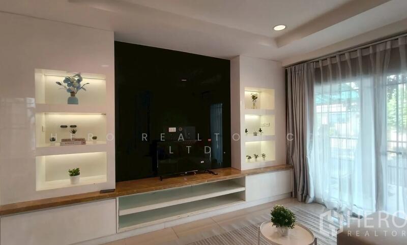 • ห้องนั่งเล่นโปร่งสว่าง พร้อมผนังทีวีบิวท์อิน