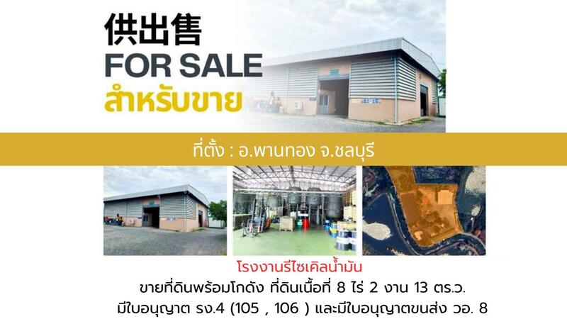 ขายโรงงานขนาดใหญ่ 8 ไร่กว่า พร้อมใบ รง.4 พานทอง ชลบุรี, ชลบุรี