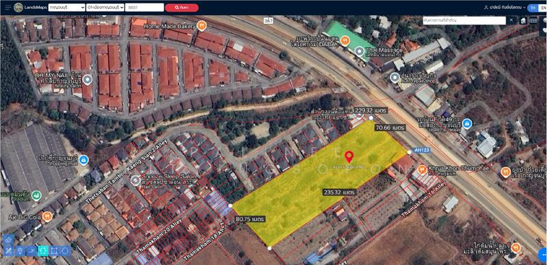 ที่ดิน รูปสี่เหลี่ยมผืนผ้า หน้ากว้าง 70 เมตร ลึก 235 เมตร