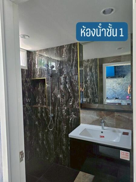 - ออฟฟิศชั้นล่างติดแอร์กั้นกระจก ติดพื้นที่สวน เปิดประตูกระจกได้ มีห้องน้ำ 2 ห้อง (ชั้นล่าง 1 / ชั้นบน 1) ห้องนอนชั้นบน 2 ห้อง ติดแอร์ มีที่ทำครัวชั้น 1 สะดวกกว้าง