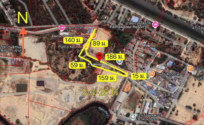 - พื้นที่รวม 3 ไร่ 3 งาน 25 ตารางวา