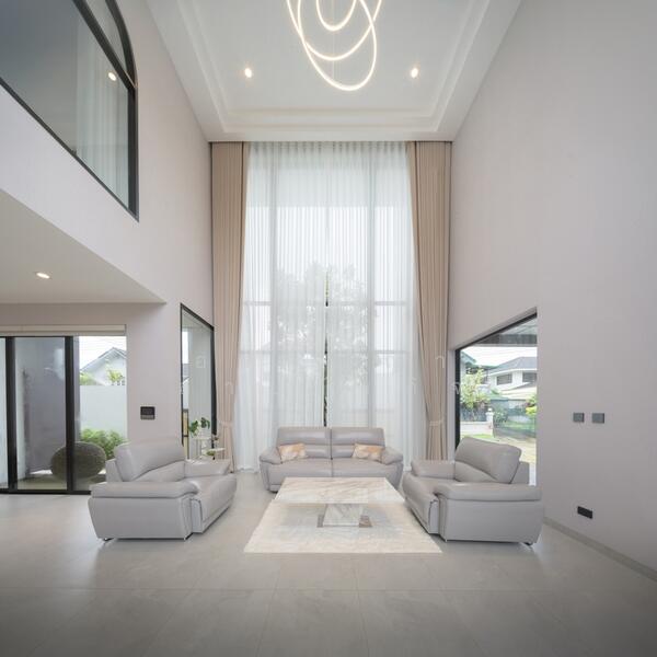 • 1 โถงรับแขกเพดานสูง อากาศถ่ายเทได้ดี พร้อมโซนรับแขก และโซนนั่งเล่น