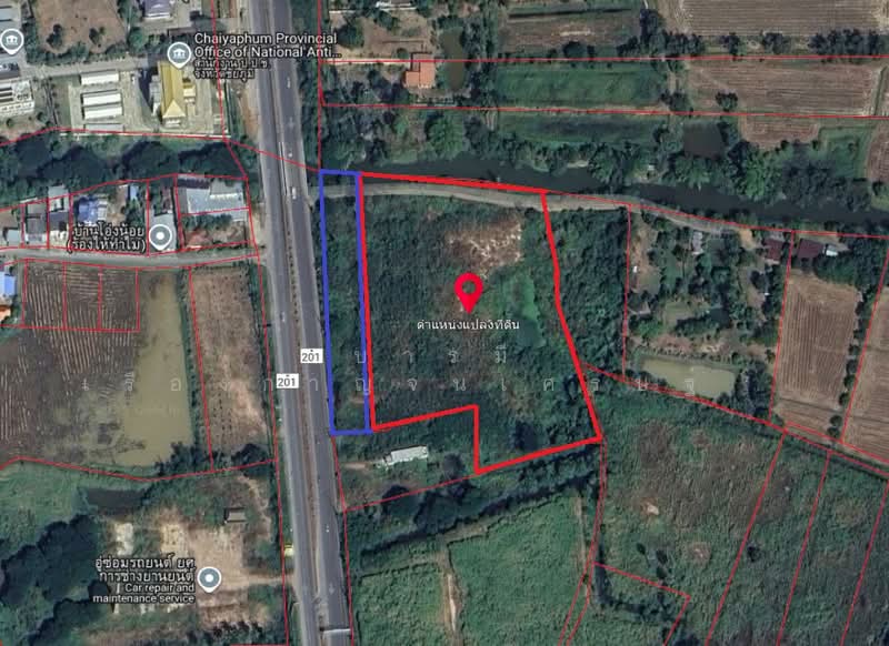 ที่ดินจังหวัดชัยภูมิ ใกล้สี่แยกโรงต้มกลั่นสุรา ถนน ชัยภูมิ - ภูเขียว ตั้งอยูู่ที่ ชัยภูมิ-ภูเขียว, โพนทอง, เมืองชัยภูมิ, ชัยภูมิ โพนทอง เมืองชัยภูมิ ชัยภูมิ.