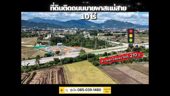ที่ดินติดถนนบายพาสแม่สาย 10 ไร่ ห่างแยกไฟวัลณี 210 ม., เชียงราย