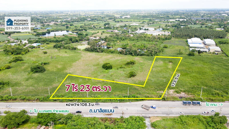 ราคาขายของยูนิต ที่ดินติดถ.มาลัยแมน เพียงไร่ละ 3.2 ลบ. 5นาทีจากโลตัสกำแพงแสน อยู่ที่ ฿22,584,000.