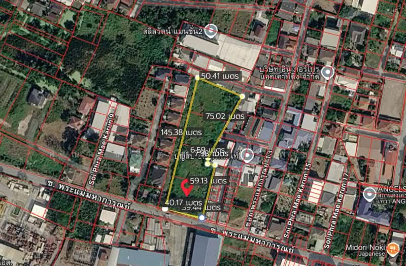 - เนื้อที่รวม 4 ไร่ ถมแล้วเรียบร้อย หน้ากว้าง 40 เมตร ลึก 145 เมตร