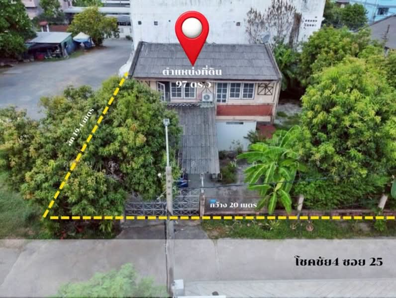 ขายที่ดินพร้อมบ้านเดี่ยว โชคชัย 4 ซอย 25 ขนาด 97 ตร.ว