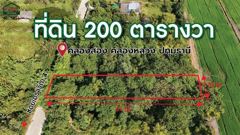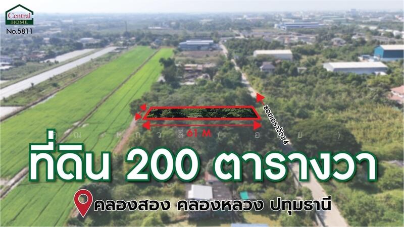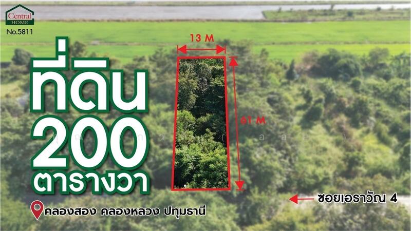 ที่ดินเปล่า 200 ตร.วา ซอยเอราวัณ 4 - คลองหลวง 2 ปทุมธานี