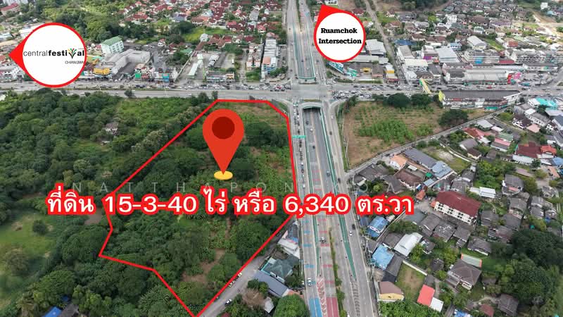 ที่ดินแปลงใหญ่ 15 ไร่ ติดถนนหลัก 2 ด้าน ห่างจากเซ็นทรัลเชียงใหม่ 3นาที