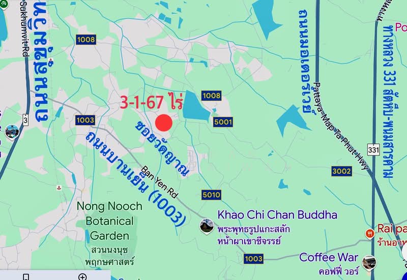 ขายที่ดิน 3-1-67 ไร่ 20กม จาก พัทยาใกล้ อ่างเก็บน้ำ เขาชีจรรย์ วัดญาน