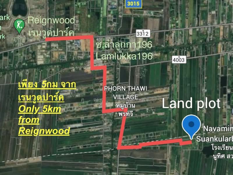 แค่ 5กม จากเรนวูดปาร์ค เจ้าของ..ขายยก5 แปลง! ที่ดิน คลอง12 หนองจอก