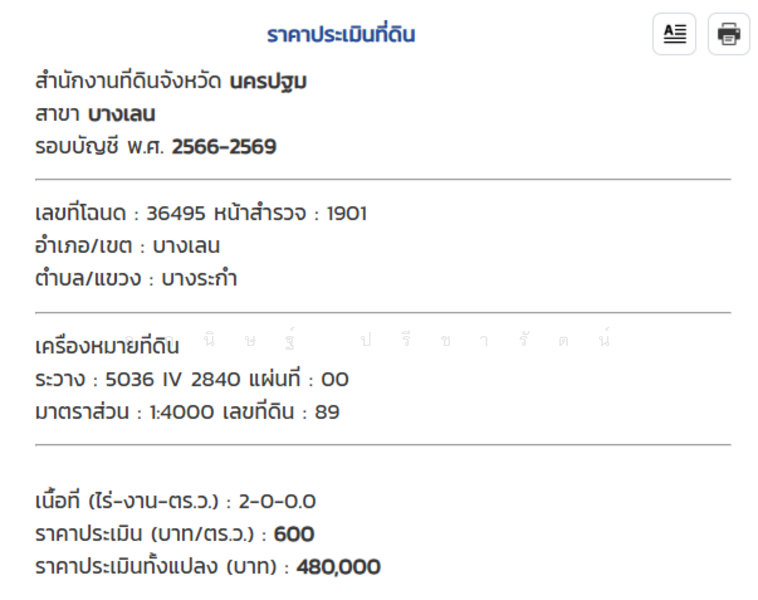 ฿625 / ตารางเมตร (ที่ดิน)
