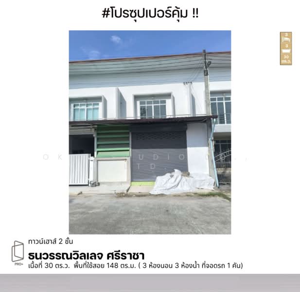 ทาวน์โฮม ธนวรรณวิลเลจ ศรีราชา-หนองค้อ ได้ที่ดินใหญ่