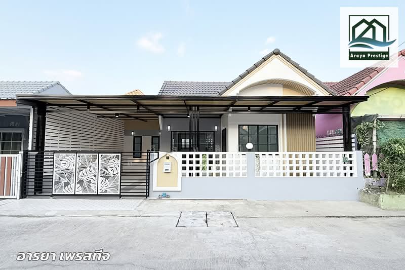 จุดเด่นอสังหาริมทรัพย์ : บ้านชั้นเดียวรีโนเวทตกแต่งใหม่ทั้งหลัง บ้านสวยมีพื้นที่ใช้สอยเยอะ ภายในบ้านมีเฟอร์นิเจอร์ชุดใหม่พร้อมเข้าอยู่ บ้านอยู่ต้นซอยห่างจากปากซอยเพียง 100เมตร