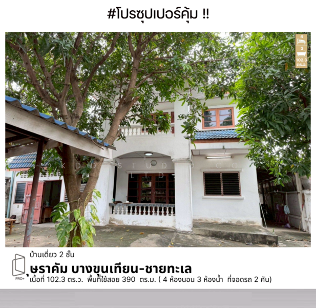 โอกาสเป็นเจ้าของคฤหาสน์บนเนื้อที่กว่าร้อยตารางวา! ขายบ้านเดี่ยว 2 ชั้น หมู่บ้านบุษราคัม บางขุนเทียน-ชายทะเล โดดเด่นด้วยเนื้อที่ดินขนาดใหญ่ถึง 102.3 ตร.ว. เป็นบ้านแปลงมุม มีความเป็นส่วนตัวสูง เหมาะสำหรับครอบครัวใหญ่ที่ต้องการพื้นที่จัดสวน หรือรีโนเวทต่อเติมเป็นบ้านในฝันสไตล์ตัวเอง