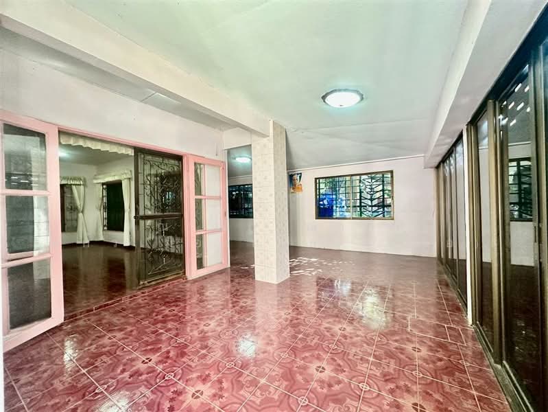 มี 3 ห้องนอน, 2 ห้องน้ำ 1 ครัว บ้านหลังมุม ต่อเติมด้านหน้าเชื่อมกับตัวบ้านและต่อเติมด้านข้างเชื่อมกับตัวบ้านเป็นห้องขนาดใหญ่ ต่อเติมครัว พื้นปูกระเบื้อง มีผ้าม่าน เหล็กดัด