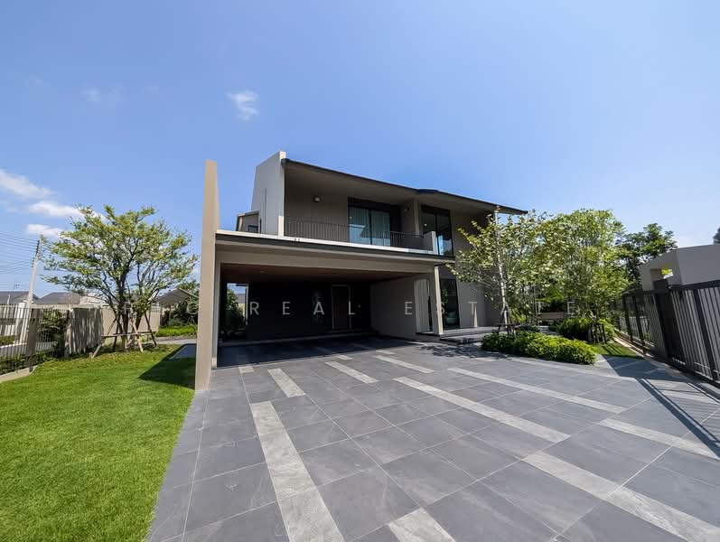 นอกจากนี้ยังมีที่จอดรถ 3 คัน พร้อมระบบน้ำและไฟฟ้าติดตั้งเรียบร้อย รวมถึงปั๊มน้ำและการจัดสวนสนามหญ้า ทำให้บ้านพร้อมเข้าอยู่ได้ทันที