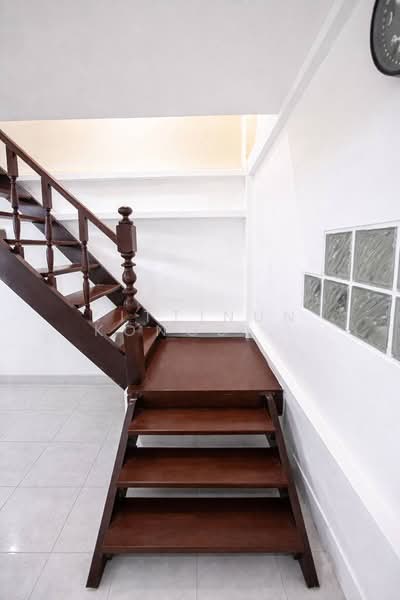 - ชั้นล่างปูกระเบื้อง ชั้นบนปูปาร์เก้