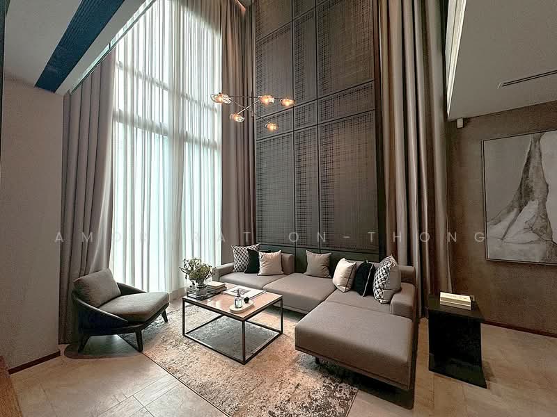 • ห้องนั่งเล่นเพดานสูงแบบ Double Volume หรูหราและโปร่งโล่ง