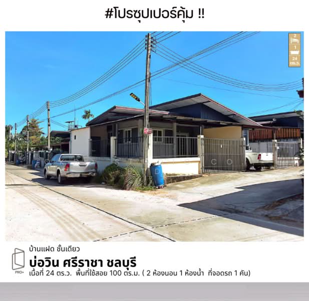 บ้านแฝดชั้นเดียว ทำเลบ่อวิน-อมตะซิตี้ มาแล้วครับ