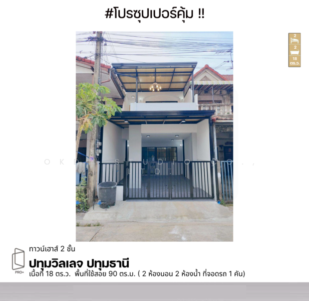 เนื้อที่ดิน :18.00 ตร.วา พื้นที่ใช้สอย 90 ตร.ม.
