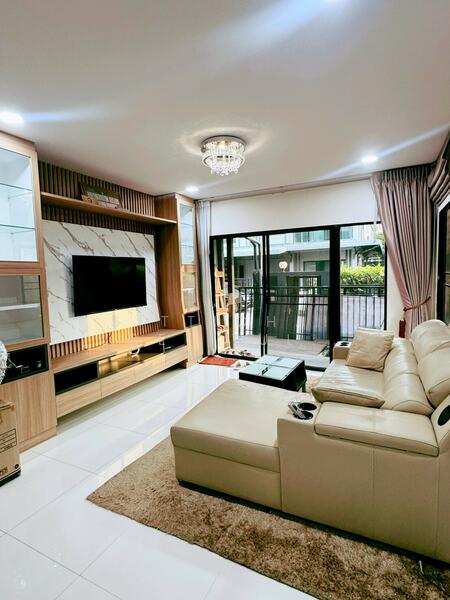 ตัวบ้านมีพื้นที่นั่งเล่นและรับประทานอาหารที่โปร่งสบาย ห้องนอนขนาดดี และพื้นที่ครัวที่ใช้งานได้จริง รองรับการอยู่อาศัยแบบครอบครัวใหญ่ หรือการทำงานที่บ้านได้อย่างลงตัว บรรยากาศโครงการสงบ เป็นชุมชนที่มีการดูแลรักษาอย่างดี